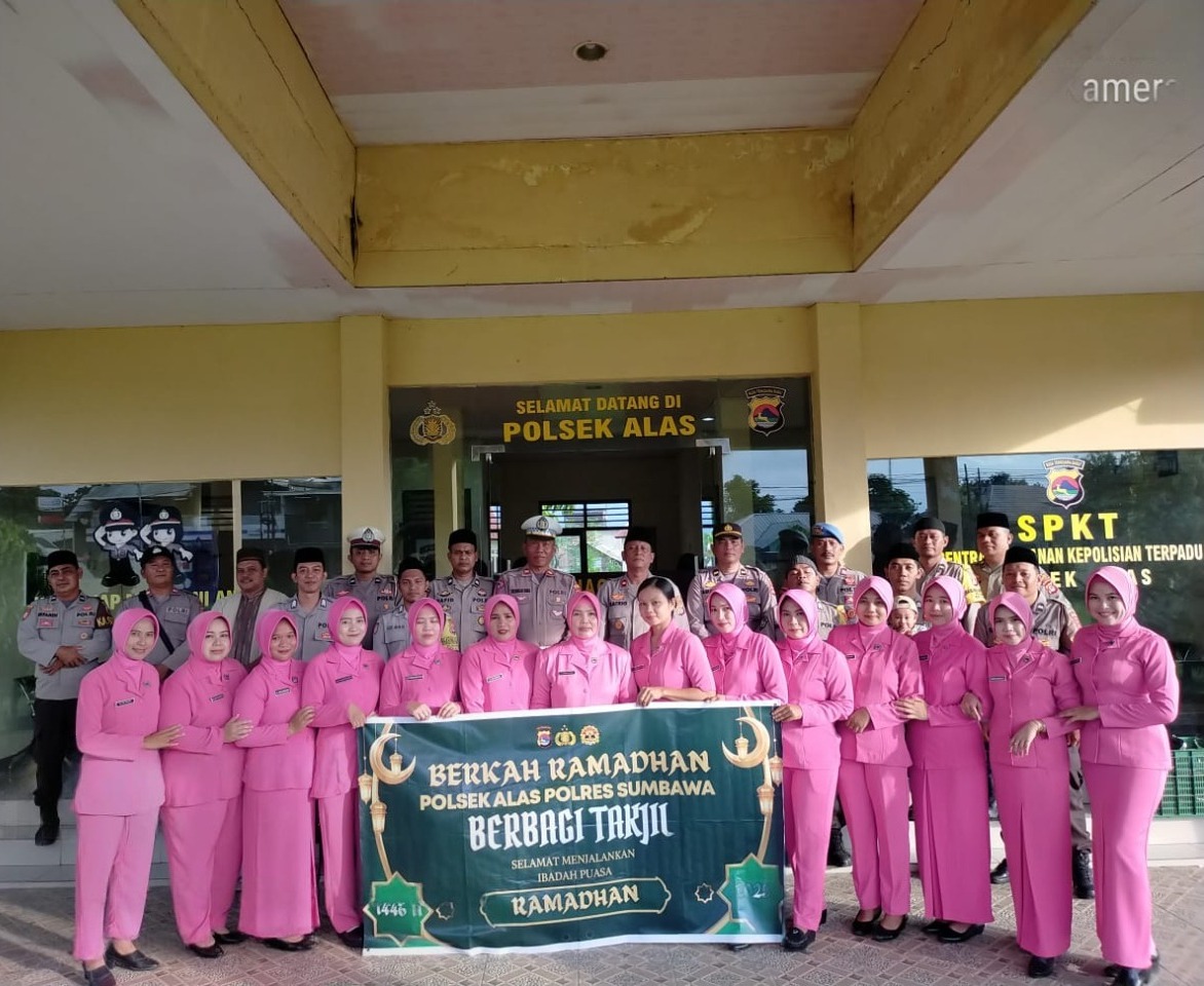 Sumbawa Besar –NTB, Personel Polsek Alas dan Polsek Alas Barat, bersama dengan Bhayangkari, melaksanakan kegiatan pembagian takjil kepada masyarakat di wilayah masing-masing pada hari Selasa (18/03/25).