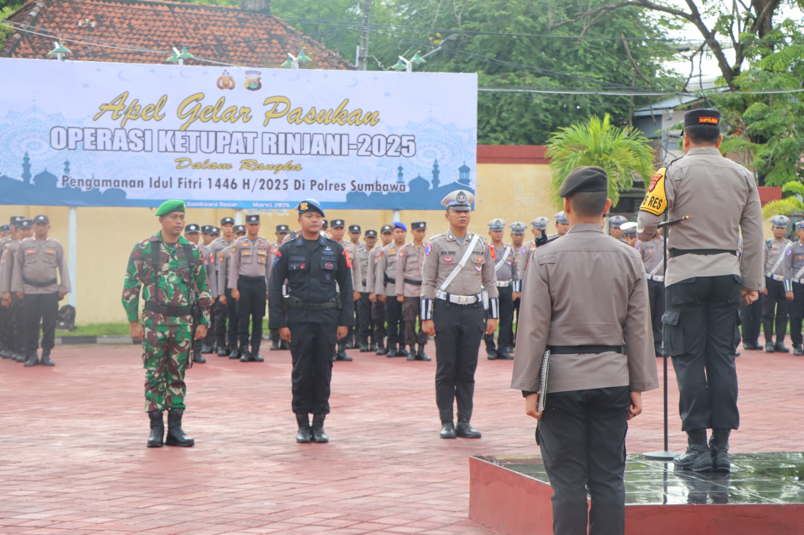 Sumbawa Besar-NTB, Polres Sumbawa jajaran Polda NTB melaksanakan apel gelar pasukan dalam rangka persiapan Operasi Ketupat Rinjani 2025. Apel ini berlangsung di Lapangan Wicaksana Laghawa Polres Sumbawa pada Jumat pagi (21/03/25).