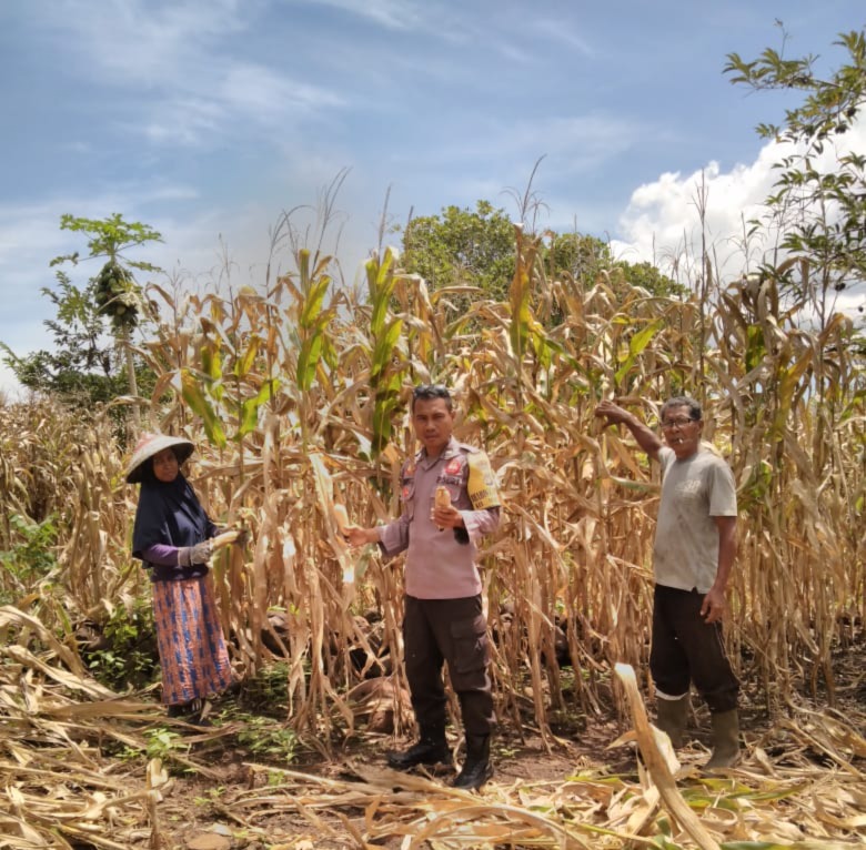 Kota Bima, NTB (14 April 2025) – Wujud kepedulian terhadap kesejahteraan masyarakat serta mendukung program Ketahanan Pangan Nasional yang dicanangkan Presiden RI, Bhabinkamtibmas Kelurahan Matakando, Polsek Rasanae Barat, Polres Bima Kota, Aipda Hairul, turun langsung membantu proses panen jagung milik warga binaannya.