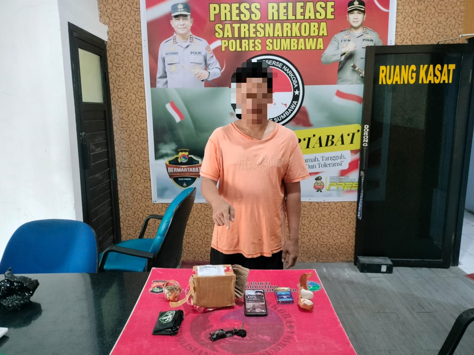 Sumbawa Besar–NTB, Satuan Reserse Narkoba Polres Sumbawa kembali menunjukkan komtimennya dalam memberantas peredaran narkotika yang ada di wilayah Kabupaten Sumbawa. Seorang pria berinisial H (29 tahun) asal Unter Iwes berhasil diamankan tim opsnal Polres Sumbawa pada hari Jum’at (13/06/2025) sekitar pukul 12.00 Wita.
