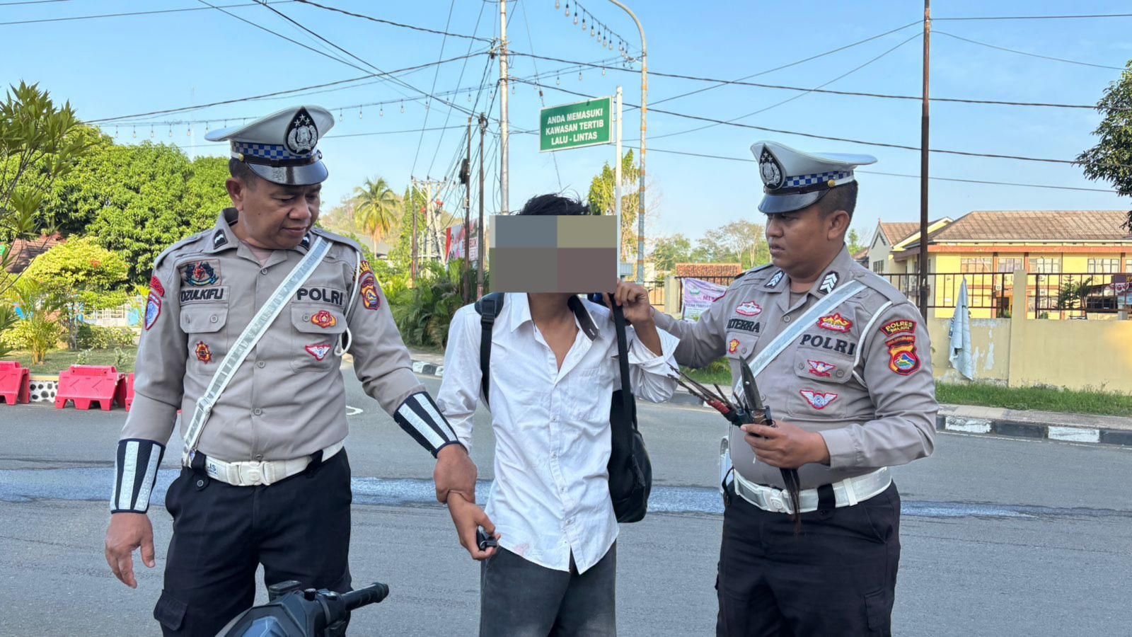 Kota Bima, NTB (27 September 2025) – Personel Satuan Lalu Lintas (Satlantas) Polres Bima Kota berhasil mengamankan seorang pengendara sepeda motor yang kedapatan membawa panah dan senjata tajam (sajam) saat melaksanakan kegiatan Rawan Pagi di kawasan Lampu Merah Simpang Empat Gunung Dua, Kota Bima, pada Sabtu (27/9/2025) sekitar pukul 07.15 Wita.