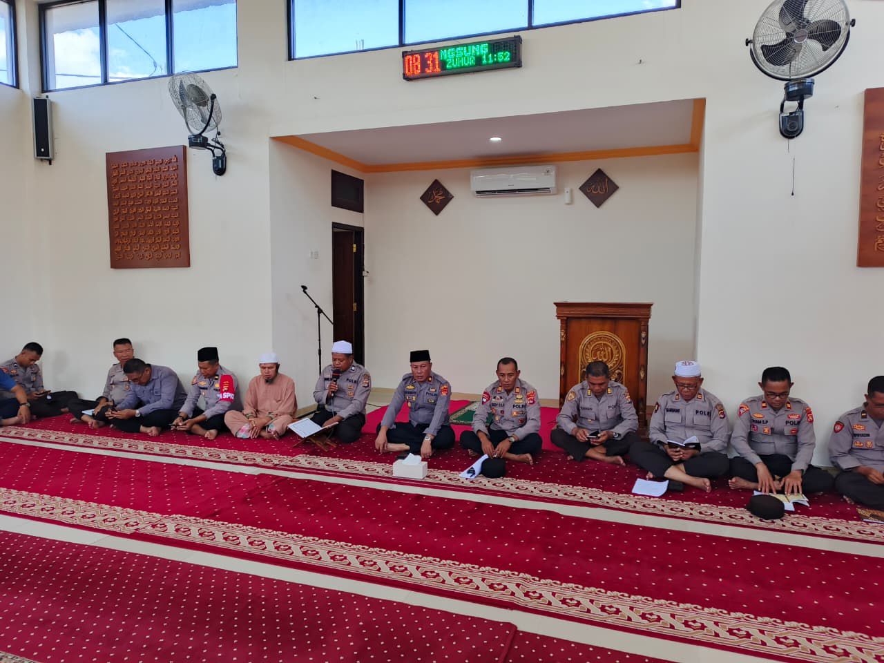 “Pada pukul 08.30 Wita, seluruh personel Polres Bima Kota yang beragama Islam memasuki Masjid Jabal Qubis. Kegiatan ini dipimpin langsung oleh Wakapolres Bima Kota Kompol Herman, S.H., serta diikuti oleh para Pejabat Utama (PJU), perwira, bintara, dan ASN Polres Bima Kota,” jelas Kasi Humas.
