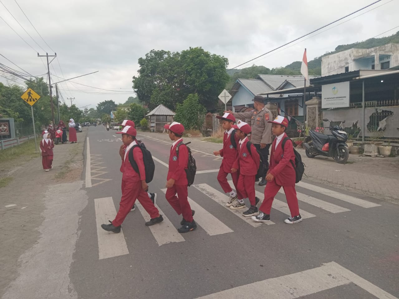 jaga keselamatan pelajar di pagi hari, personel jajaran polres summbawa barat melaksanakan rawan pagi