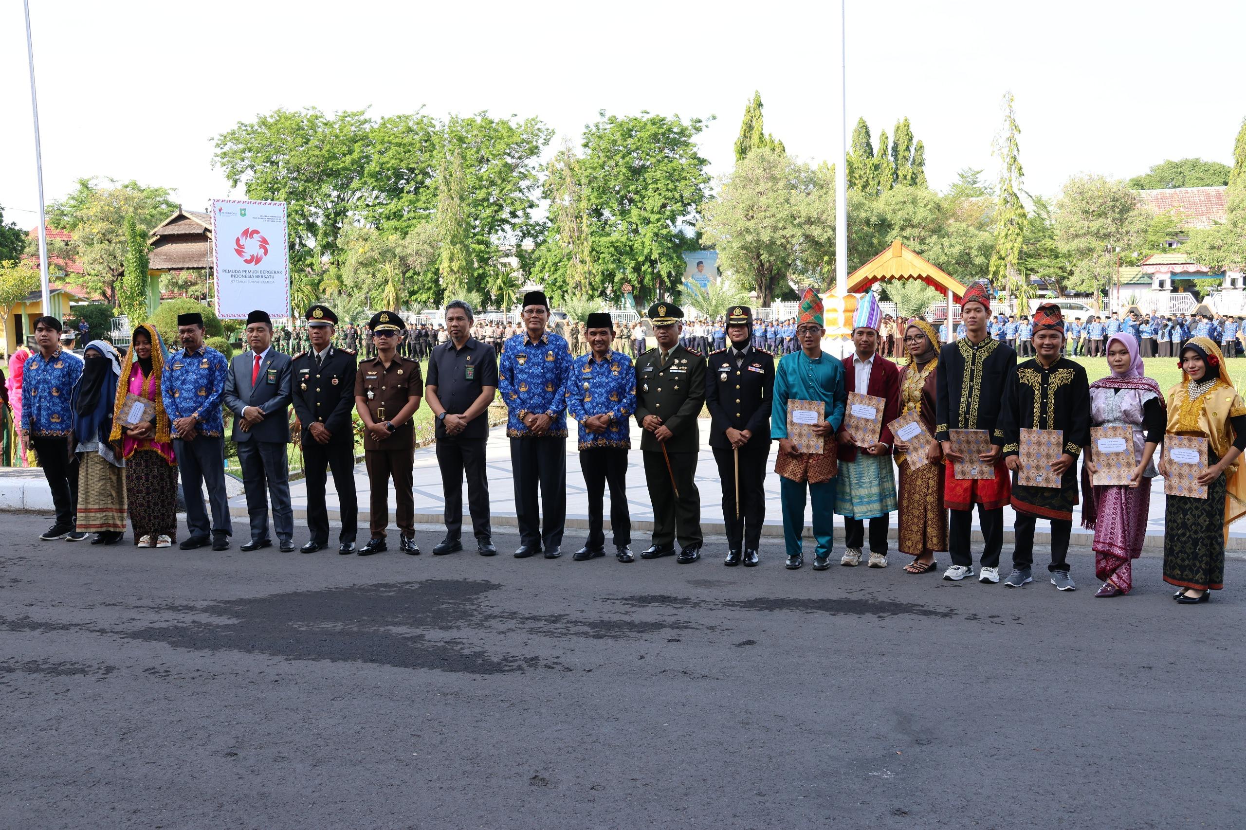 Upacara diwarnai dengan kehadiran siswa-siswi SMA yang mengenakan berbagai kostum suku/adat, melambangkan keberagaman di Sumbawa. Seluruh rangkaian kegiatan, termasuk pengibaran Bendera Merah Putih dan pembacaan naskah Sumpah Pemuda, berjalan dengan aman, lancar, dan tertib, dan diakhiri dengan foto bersama pada pukul 09.00 Wita. (MA)