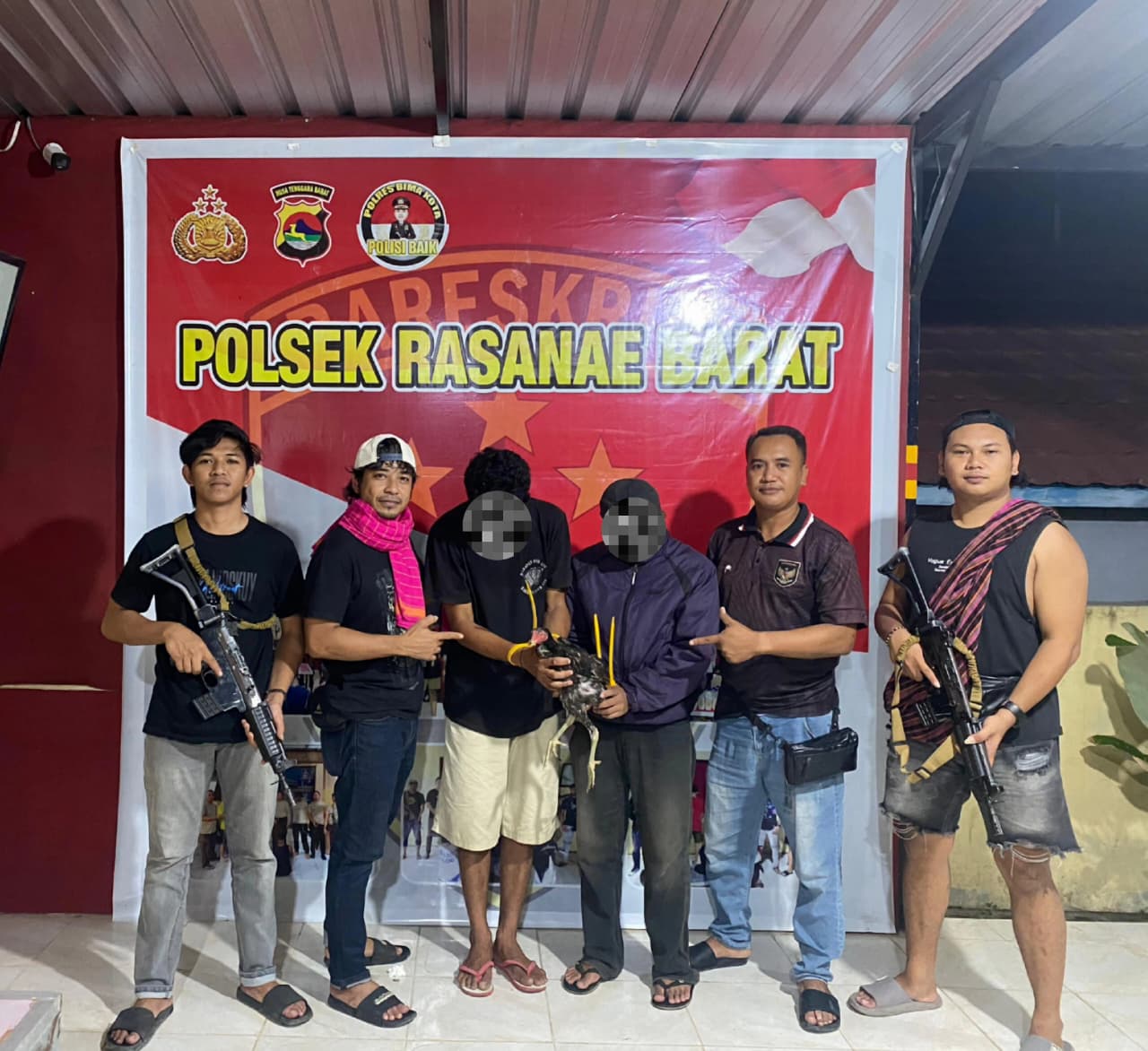 Dalam penangkapan tersebut, polisi turut mengamankan barang bukti berupa satu ekor ayam jantan yang ditemukan di kediaman salah satu pelaku.