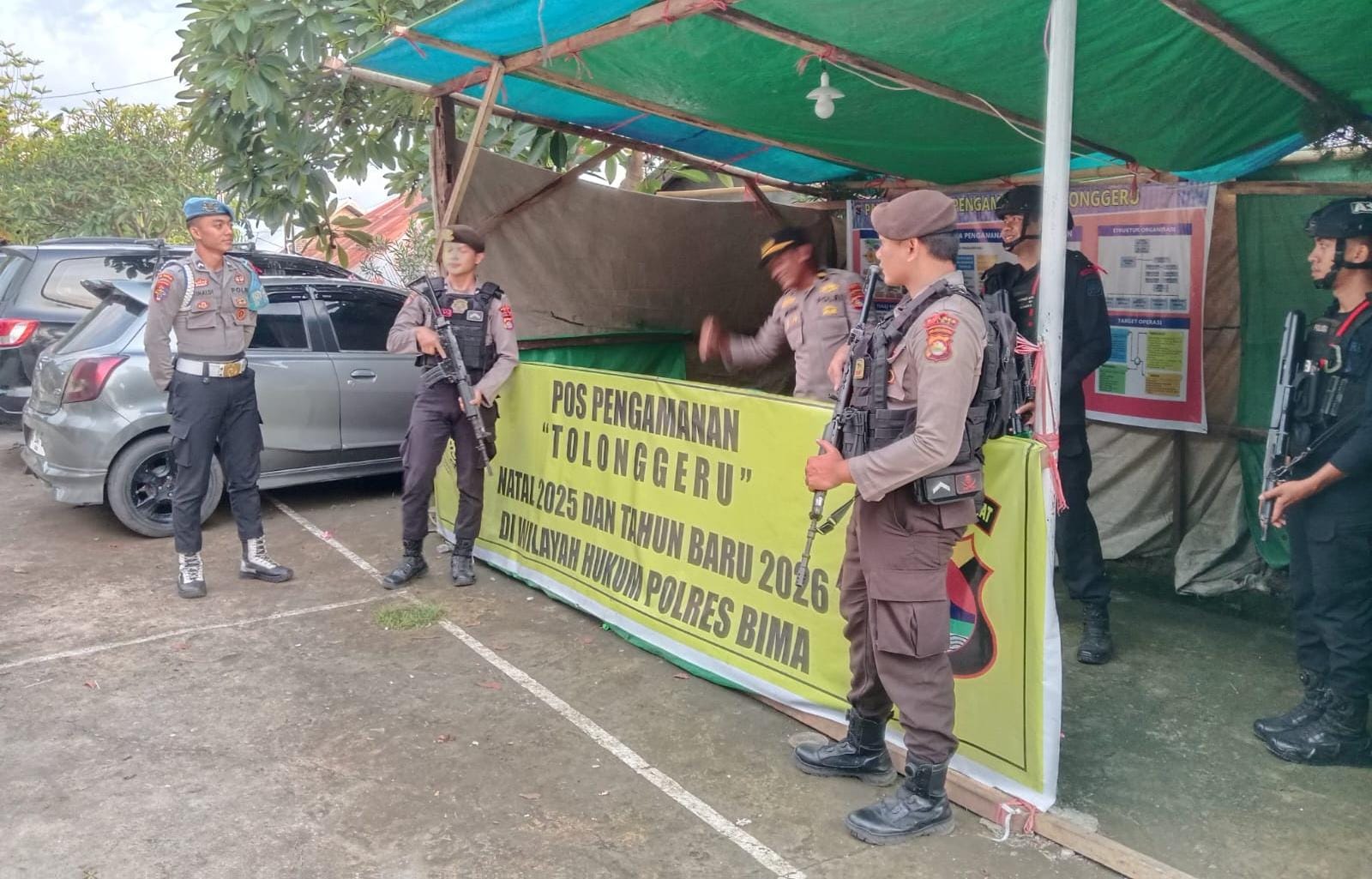 Jum,at (02/01/26) Personel Polres Bima Polda NTB yang terlibat dalam operasi lilin Rinjani 2025 di Pos PAM Gereja Santo Yohanes Maria Vianei Tolonggeru kembali menggelar patroli dan Sterilisasi di area gereja.