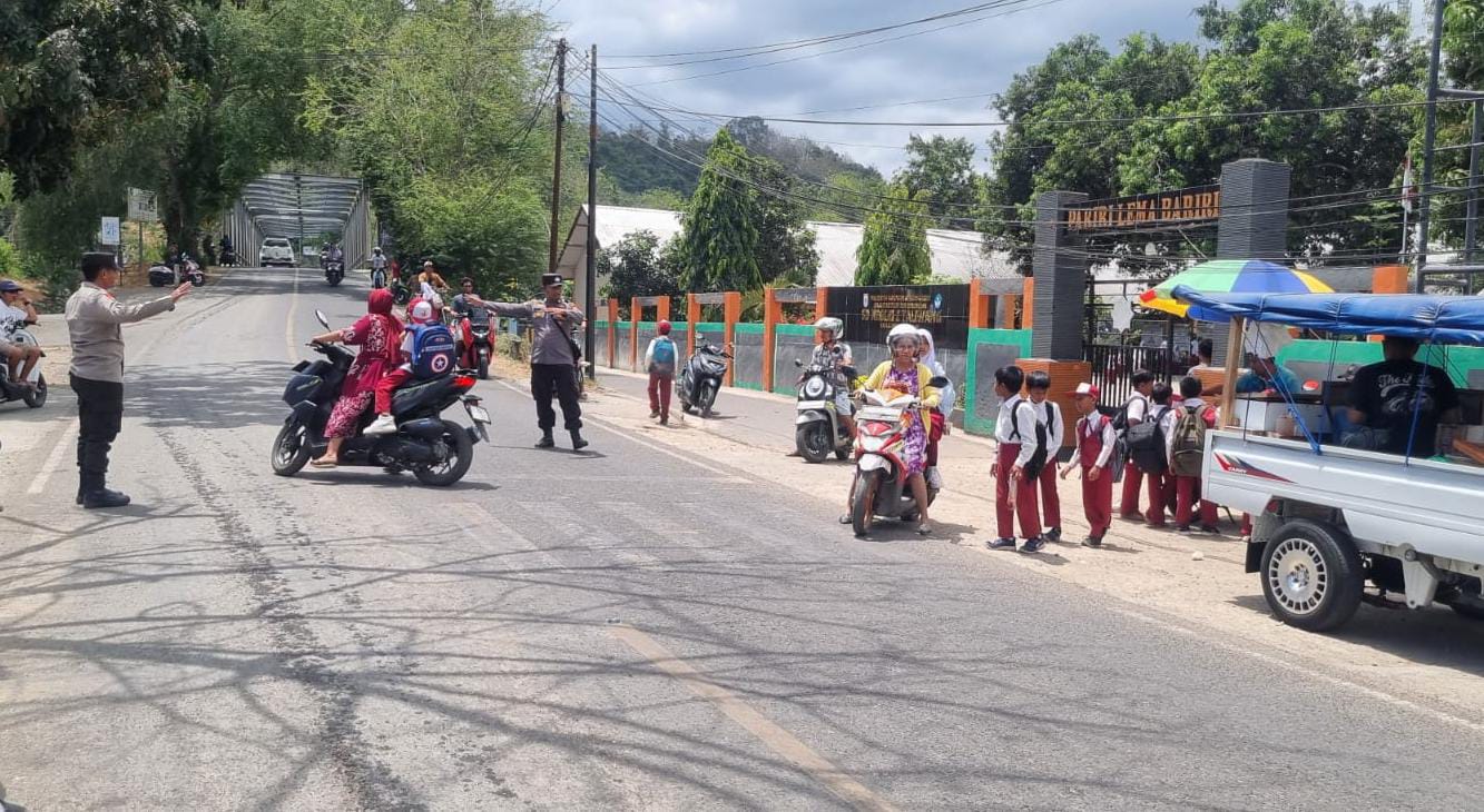 Kegiatan ini difokuskan pada pengaturan lalu lintas dan pengamanan aktivitas masyarakat, khususnya saat jam pulang sekolah. Personel kepolisian tampak membantu penyeberangan siswa, mengatur arus kendaraan, serta memberikan imbauan kepada para pengendara agar selalu Hati-hati dan mematuhi aturan lalu lintas.