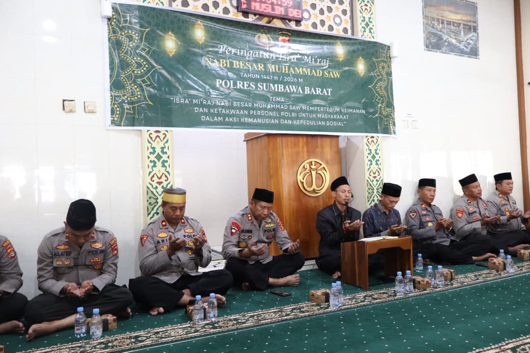 “Melalui Peringatan Isra’ Mi’raj Nabi Muhammad SAW ini, kami berharap seluruh personel Polres Sumbawa Barat dapat semakin memperkuat keimanan dan ketakwaan, sehingga nilai-nilai tersebut dapat tercermin dalam sikap, perilaku, serta pelayanan kepada masyarakat, khususnya dalam aksi kemanusiaan dan kepedulian sosial,” ujarnya.