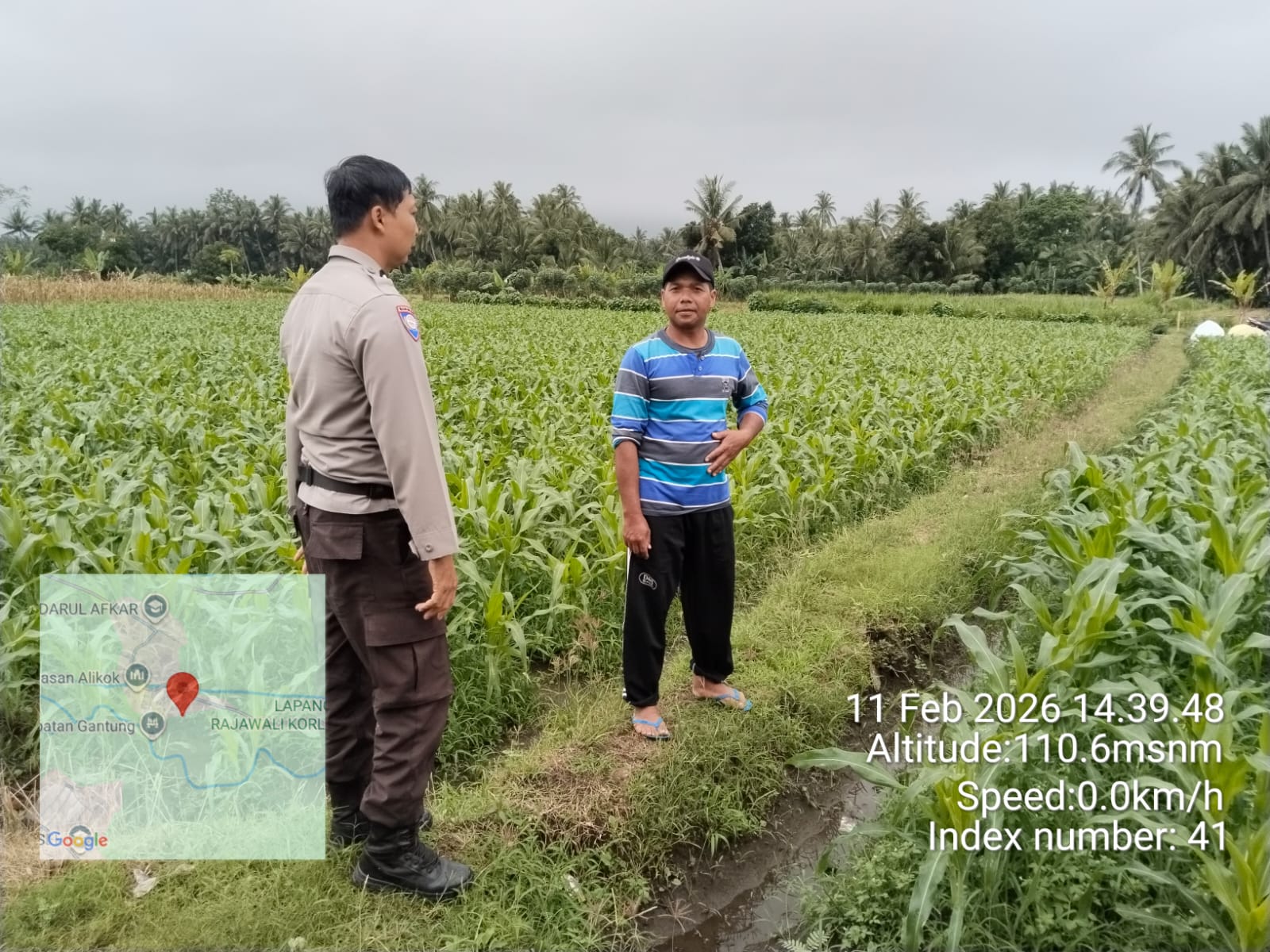 Lombok Timur – Bhabinkamtibmas Desa Korleko Polsek Labuhan Haji, Aiptu Alwan Husnayadi, melaksanakan kegiatan pengecekan lahan tanaman jagung milik warga binaannya di Dusun Lekok, Desa Korleko, Kecamatan Labuhan Haji, Kabupaten Lombok Timur sekitar pukul 14.15 WITA. Rabu (11/2/2026).