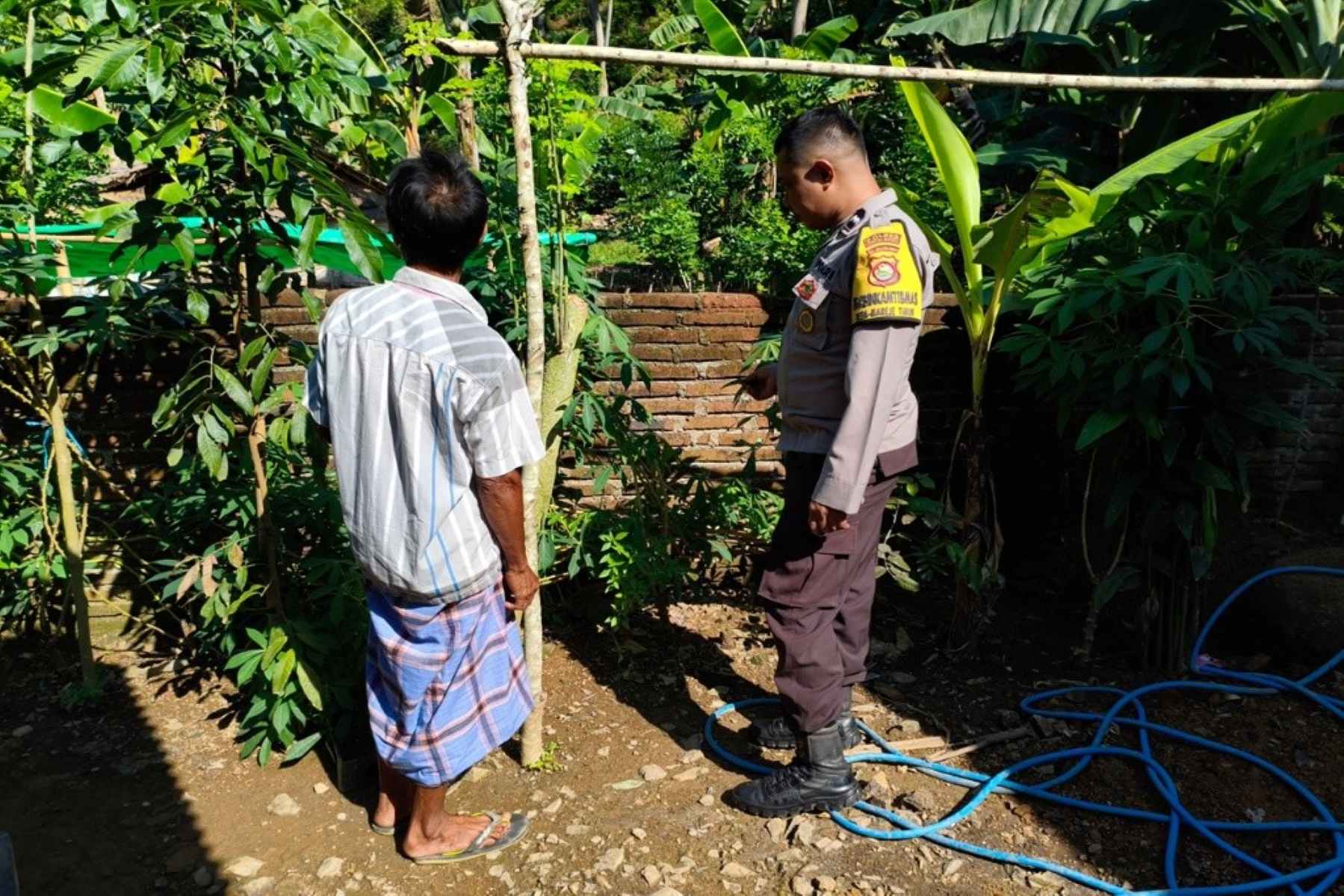 Selain memberikan edukasi, personel Bhabinkamtibmas juga melakukan monitoring terhadap ketersediaan tanaman pendukung lainnya di wilayah Dusun Apit Aik. Pemantauan ini dilakukan untuk memastikan bahwa program ini berjalan secara berkelanjutan dan tidak berhenti pada tahap sosialisasi saja. Petugas memeriksa kondisi tanaman yang sudah ada serta memberikan saran teknis mengenai perawatan tanaman agar menghasilkan panen yang berkualitas.