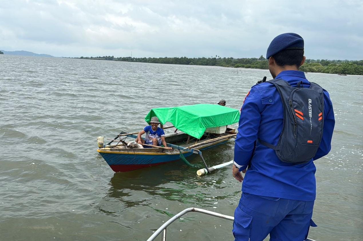 Tim patroli menyisir area perairan dan menghampiri satu per satu perahu nelayan tradisional yang sedang mencari ikan untuk menyerahkan bantuan secara langsung.