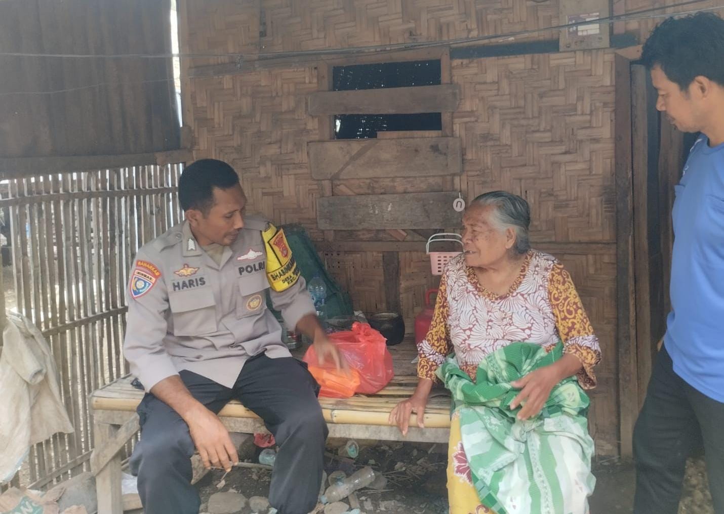 Kedatangan Bripka Abdul Haris membawa bantuan sembako untuk membantu meringankan beban Nenek Jaenab di usianya yang sudah renta.