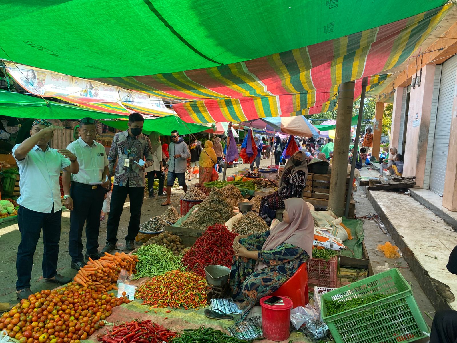 Dalam kegiatan tersebut, tim juga berdialog langsung dengan para pedagang untuk memastikan harga jual bahan pokok tetap sesuai dengan ketentuan yang berlaku. Selain itu, dilakukan pula pengecekan terhadap ketersediaan stok serta kualitas bahan pangan yang dipasarkan kepada masyarakat.