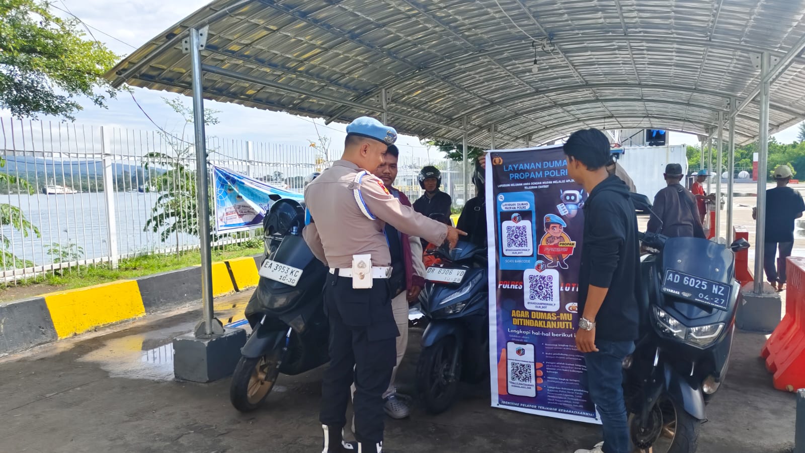 Personel Sipropam Polsek Kawasan Pelabuhan Labuhan Lombok menyampaikan secara langsung kepada para calon penumpang kapal penyeberangan mengenai cara mengakses layanan Yanduan QR Code Propam Polri. Dengan memindai kode QR tersebut, masyarakat dapat dengan mudah menyampaikan laporan secara cepat dan transparan.