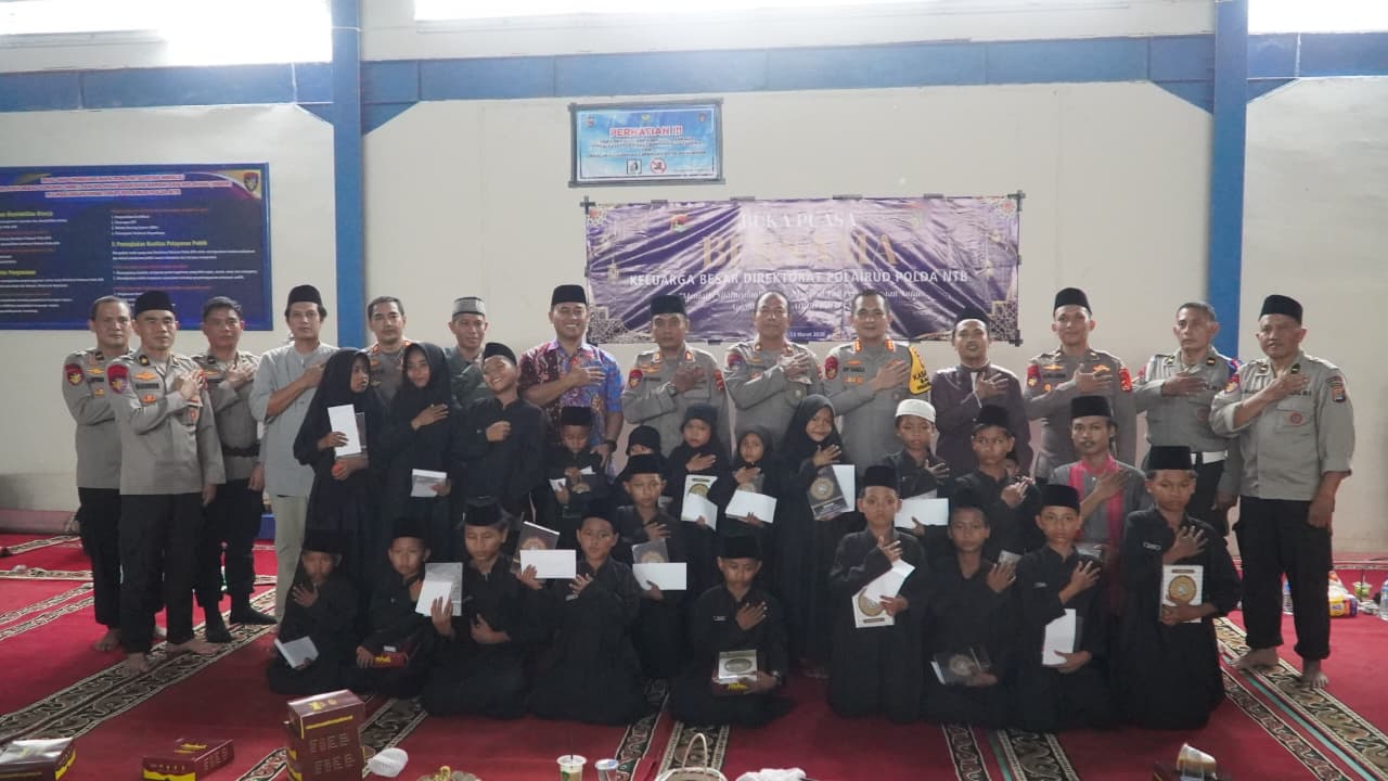 Kegiatan ini turut dihadiri oleh Dirpolairud Polda NTB Kombes Pol Boyke F.S. Samola, S.I.K., M.H., bersama personel Ditpolairud Polda NTB serta anak-anak panti asuhan yang tampak antusias mengikuti rangkaian acara.