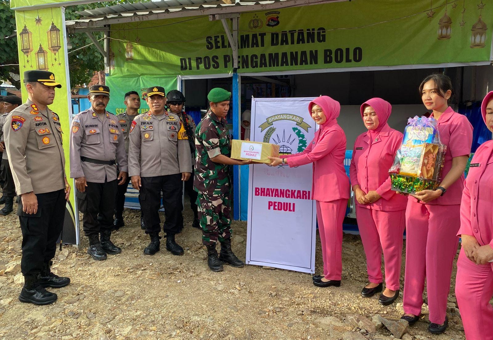 Kapolres Bima Kabupaten AKBP M.Anton Bhayangkara Gaisar S.I.K., M.H. didampingi Ketua Bhayangkari dan para Pejabat Utama (PJU) melaksanakan pengecekan kesiapsiagaan personel di Pos Pengamanan (Pospam) Operasi Ketupat Rinjani 2026, yang berlokasi di Kecamatan Bolo Selasa (17/3/2026).