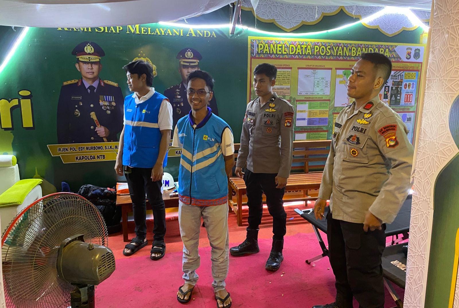 Menunjang optimalnya operasi Ketupat Rinjani 2026 tingkat Polres Bima Kabupaten Polda NTB Perusahaan Listrik Negara (PLN) Cabang Bima melakukan pengecekan Aliran Arus Listrik di Pos Pelayanan Terpadu depan Bandara SMS Bima.