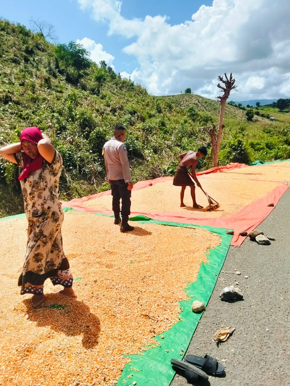 Kegiatan tersebut dilaksanakan oleh AIPTU Wawan Dermawan dengan melakukan pemantauan terhadap hasil panen jagung milik Saudara Muhdar (60), yang saat ini sedang dalam proses penjemuran pascapanen.