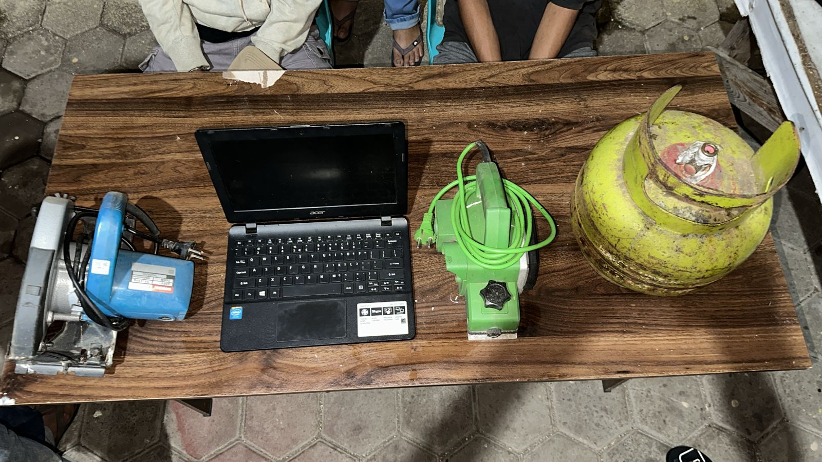 “Dari tangan pelaku, petugas berhasil mengamankan sejumlah barang bukti, di antaranya 1 unit notebook merk Acer warna hitam, 1 unit gergaji listrik merk Modern warna biru, 1 unit mesin planer merk Rio warna hijau, serta 1 buah tabung gas 3 kilogram,” jelas Kapolsek.