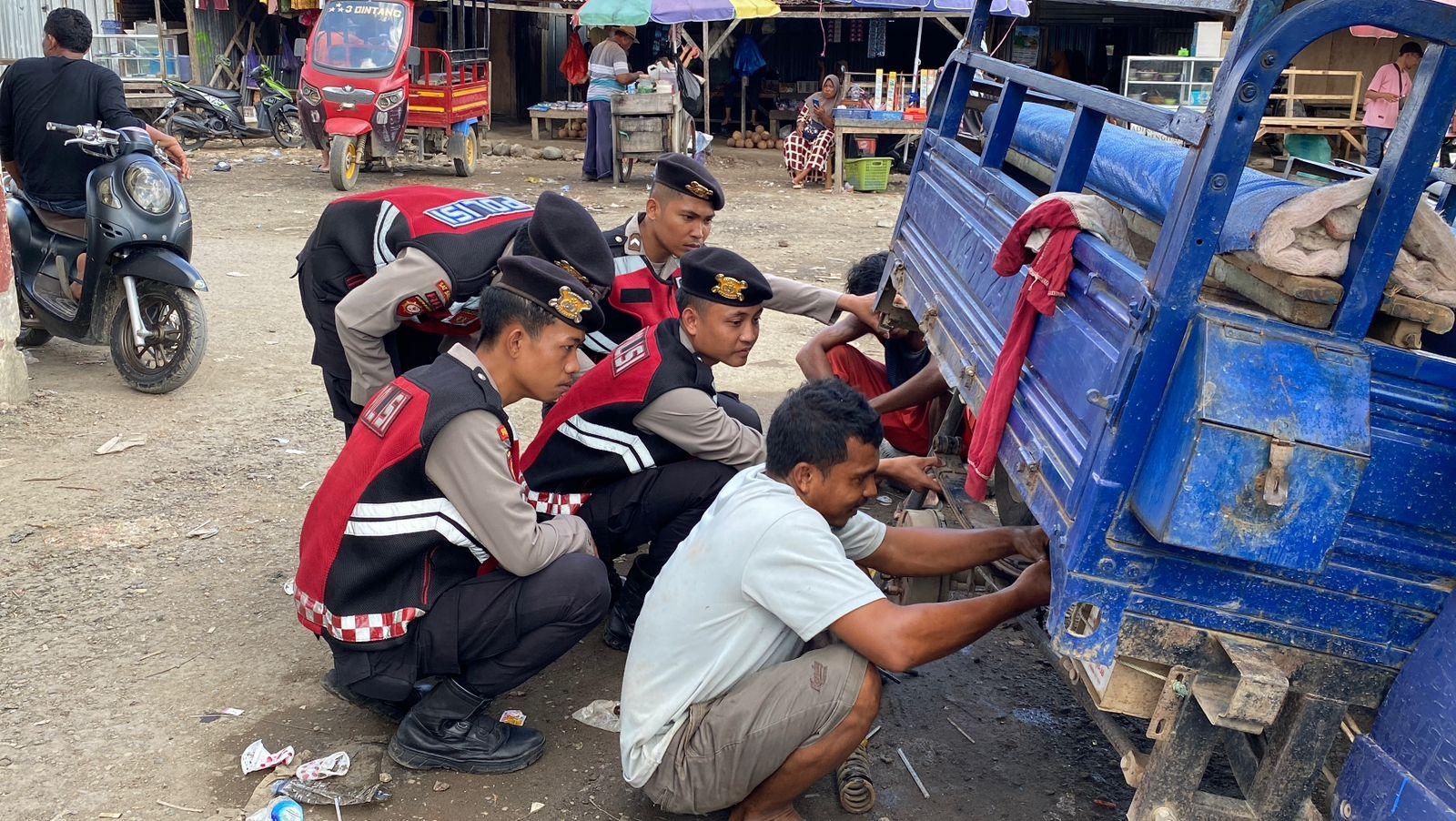 Patroli Rutin, Satsamapta Polres Bima Kabupaten Bantu Pengendara Bajai di Terminal Tente