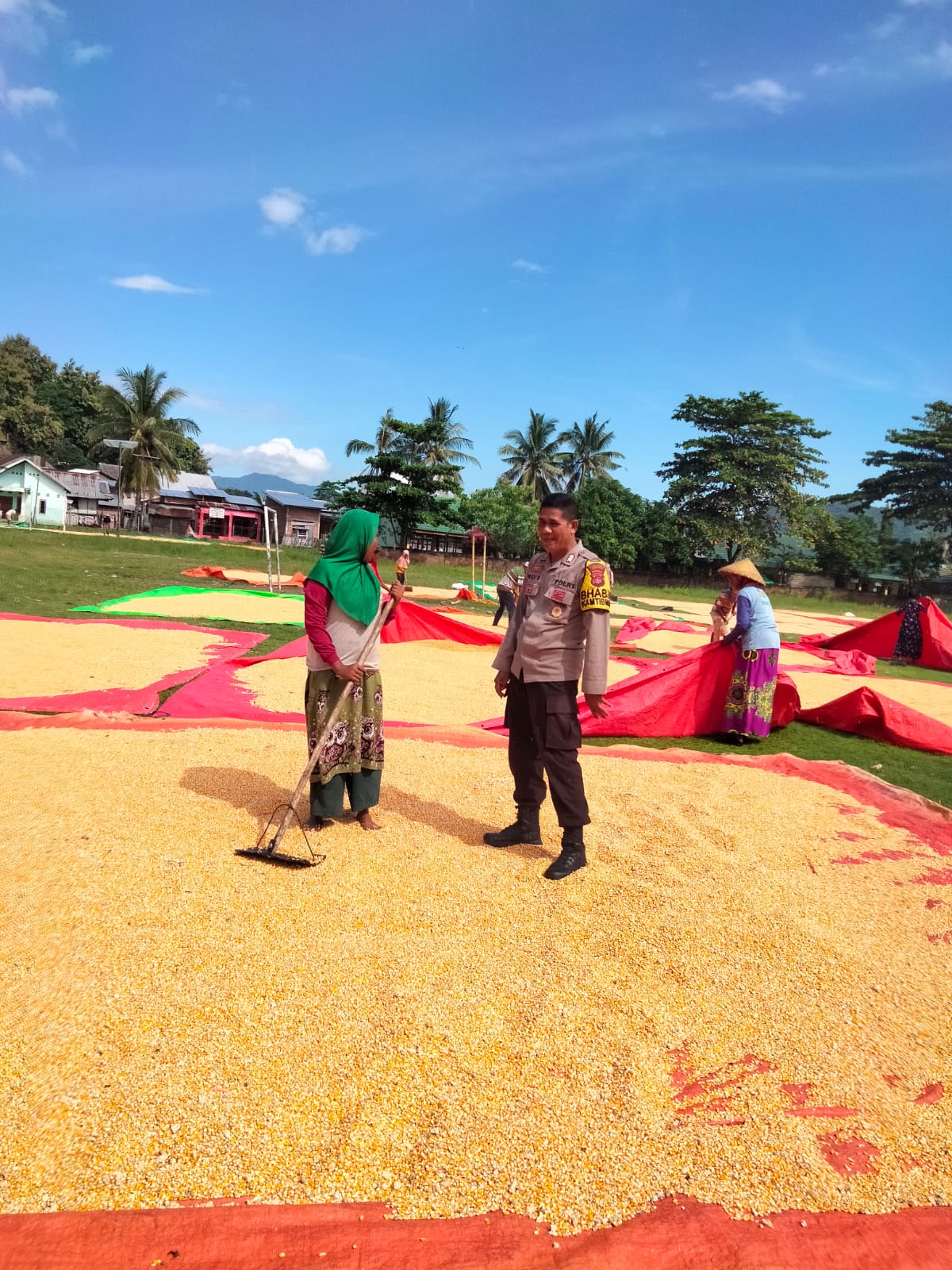 Dalam rangka mendukung Program Ketahanan Pangan Nasional menuju Indonesia Emas, Bhabinkamtibmas Desa Cempi Jaya, Polsek Hu’u, melaksanakan pemantauan terhadap hasil panen jagung milik warga yang sedang dijemur sebelum didistribusikan ke Bulog.