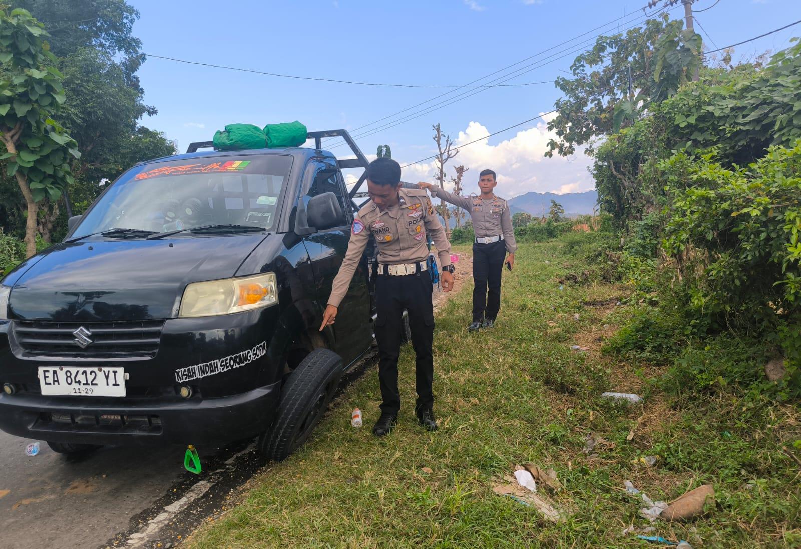 Unit Gakum Satlantas Polres Bima Kabupaten Laksanakan Olah TKP Lakalantas Tunggal di Desa Monggo