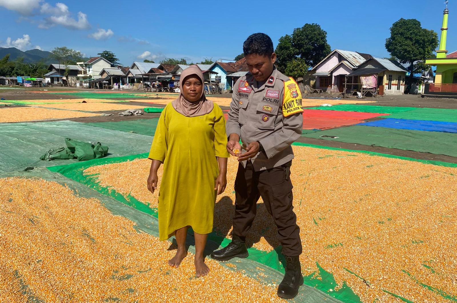 Ketahanan Pangan Nasional, Kanit Binmas Polsek Bolo Pantau dan Bantuan Jemur Jagung Warga