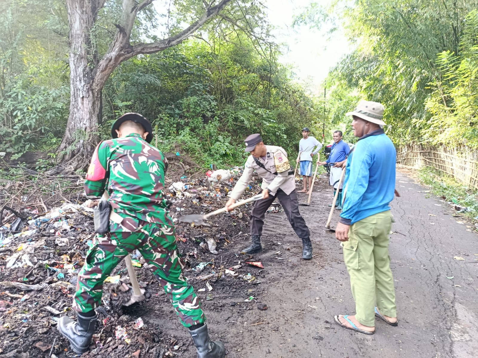Kegiatan yang dimulai sejak pukul 08.10 WITA ini difokuskan pada pembersihan tumpukan sampah yang berserakan di pinggir jalan utama. Aksi ini bertujuan untuk menciptakan lingkungan desa yang lebih sehat, bersih, dan nyaman bagi para pengguna jalan maupun masyarakat sekitar.