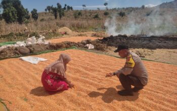 Dalam rangka mendukung program ketahanan pangan nasional, Polsek Kempo melalui Bhabinkamtibmas Desa Songgajah terus aktif melakukan pemantauan terhadap aktivitas pertanian masyarakat. Salah satunya dengan melaksanakan pemantauan proses penjemuran jagung milik warga binaan di Dusun Mada Nggajah, Desa Songgajah, Kecamatan Kempo, Kabupaten Dompu, Kamis (9/4/2026) sekitar pukul 11.30 WITA.