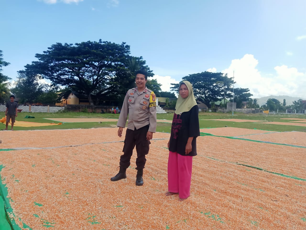 Bhabinkamtibmas Polsek Hu’u Pantau Penjemuran Jagung Warga, Dukung Ketahanan Pangan Nasional