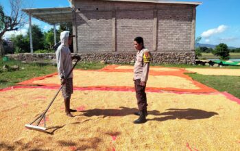 Dalam rangka mendukung program ketahanan pangan nasional serta menjaga situasi kamtibmas yang aman dan kondusif, Bhabinkamtibmas Desa Manggenae, Aipda Junaidin, melaksanakan kegiatan sambang dan tatap muka dengan warga binaan yang sedang menjemur hasil panen di Dusun Sorikuta, Desa Manggenae, Kecamatan Dompu, Kabupaten Dompu, pada Sabtu (11/04/2026) pukul 09.30 WITA.