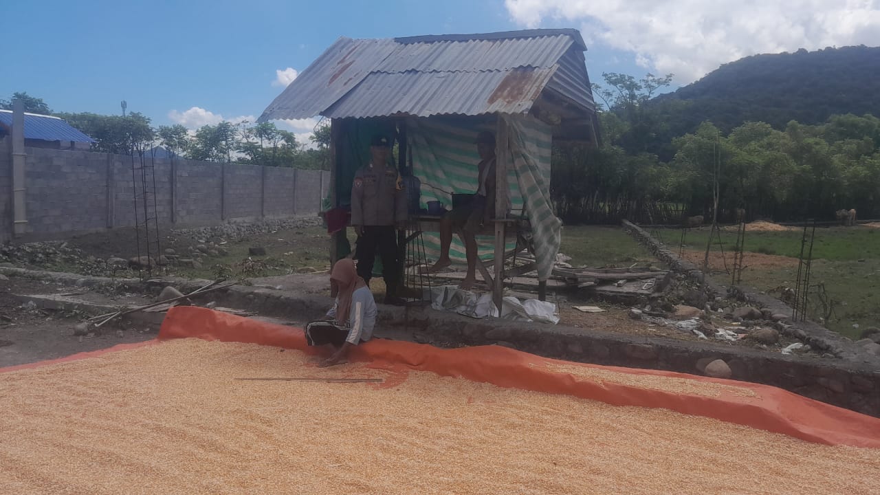 Bhabinkamtibmas Desa Daha Pantau Penjemuran Jagung Warga, Dukung Ketahanan Pangan Nasional