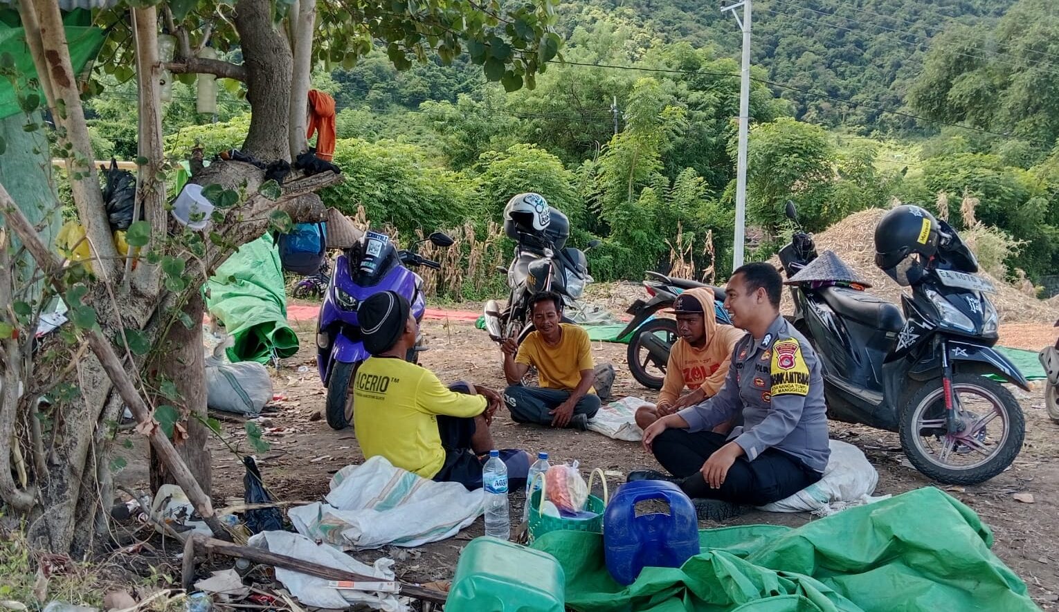 Selain itu, masyarakat juga diingatkan agar tidak main hakim sendiri atau melakukan tindakan seperti pemblokiran jalan apabila terjadi permasalahan, melainkan segera melaporkan kepada pihak Kepolisian atau Bhabinkamtibmas setempat. Bhabinkamtibmas juga mengajak masyarakat untuk bersama-sama memberantas peredaran narkoba, minuman keras, serta tidak memiliki atau menyimpan senjata ilegal.